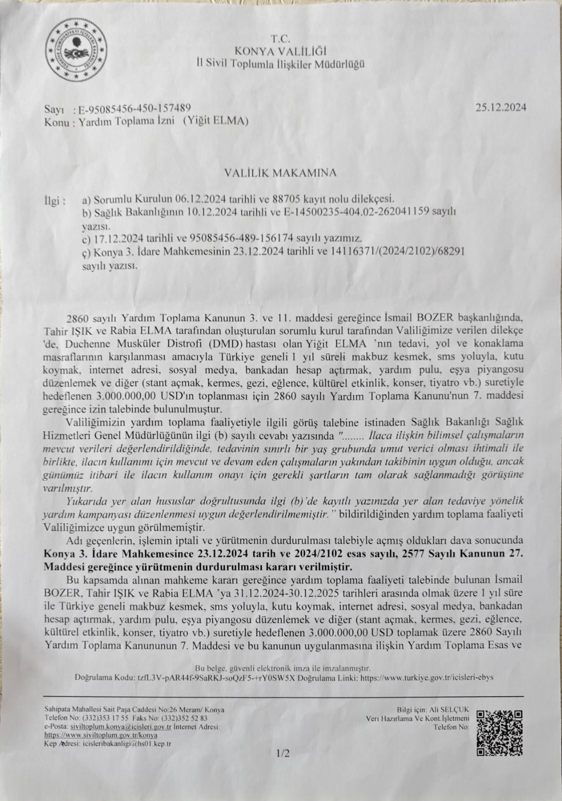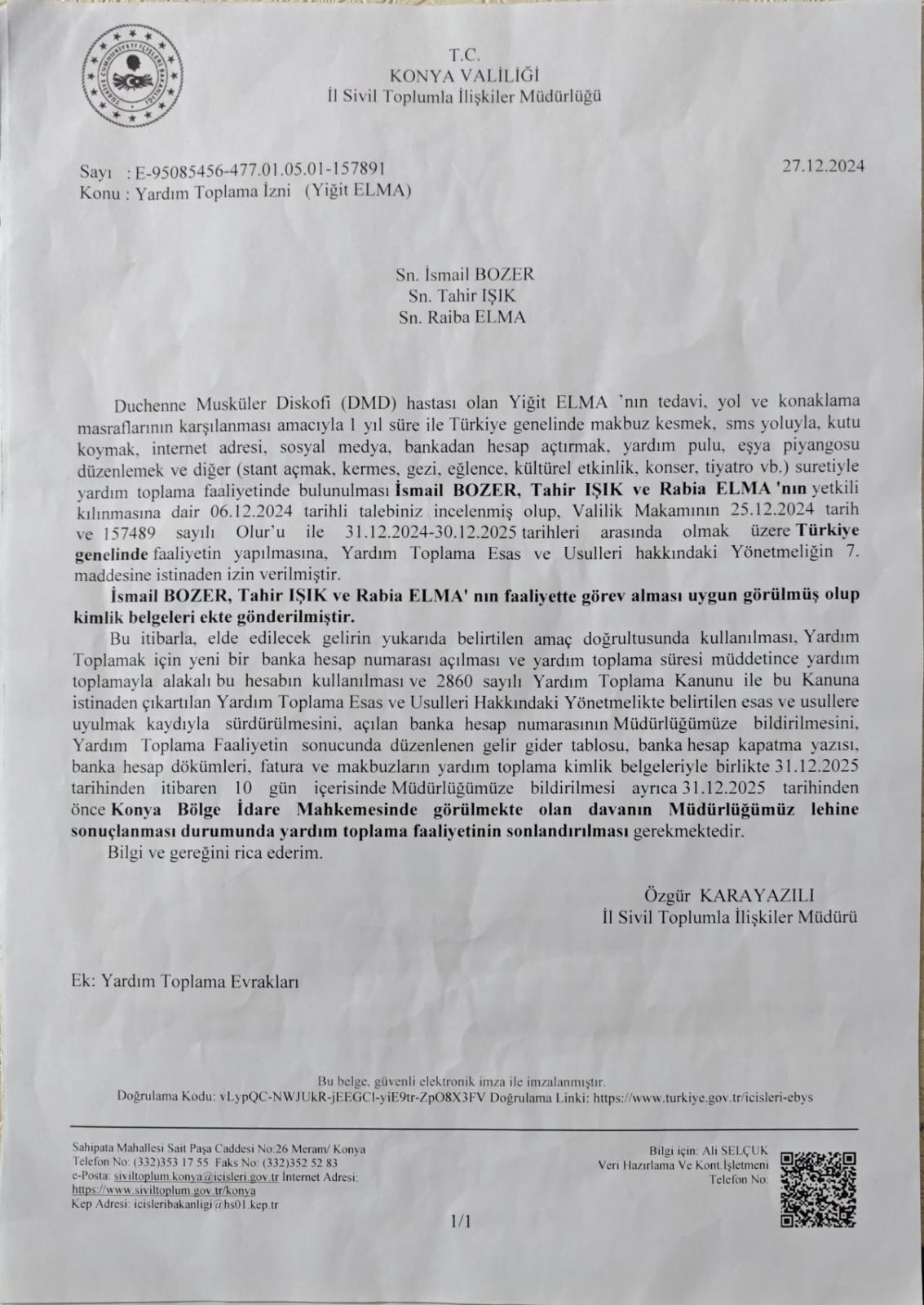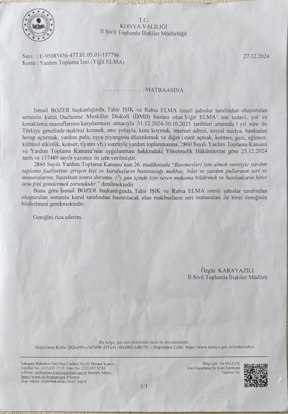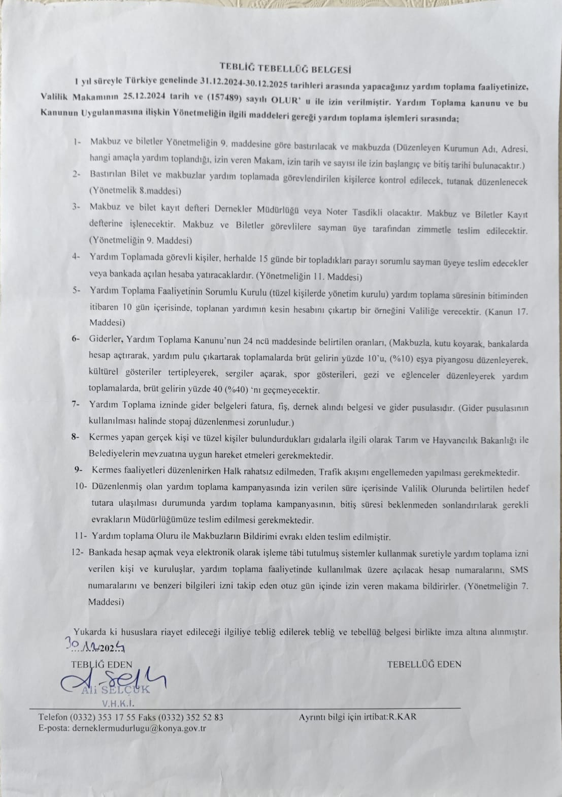 Sivil Toplum Yardım Toplama Sorgu Numarası: 42.2024.2561 RABİA ELMA